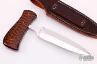 This Push Dagger by John April features a double-edged mirror polished blade with .196" blade stock and 1.140" blade depth, hidden tang construction. The handle has beautiful snakewood scales with domed nickel silver pins, black linen micarta frame with red and stainless steel liners. Comes with a Wickett & Craig leather sheath. This knife is number 263 and is marked on the sheath. Comes with a handwritten COA. New from maker. Stunning piece!