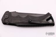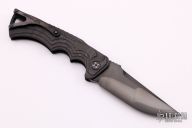 This Tighe Fighter Auto by Brian Tighe features a hand rub satin finished DLC coated multi-ground San Mai blade with notched thumbrest, S90V core with CPM154CM clading. The handle has a milled carbon fiber scales, black G-10 backspacer and a DLC coated tip up titanium clip with ceramic ball, lanyard hole at the butt. Comes with nylon zippered case. Nice action, lockup and blade seating. New from maker.
