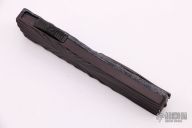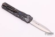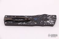 This Twist Tighe OTF by Brian Tighe features a hand rub satin finished double-edged blade. The handle has a milled and DLC coated titanium front, fat carbon back, tip up titanium clip with ruby ball insert, has ruby ball insert in the butt as a glass breaker, has a carbon fiber thumbslide. Comes with a zippered case. New from maker.