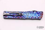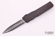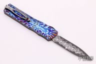 This Twist Tighe OTF by Brian Tighe features a San Mai Damascus double-edged blade. The handle has a milled and DLC coated titanium front, MokuTi back, tip up Damasteel clip with ruby ball insert, has ruby ball insert in the butt as a glass breaker, has a carbon fiber thumbslide. Comes with a zippered case. New from maker.
