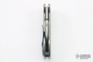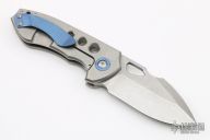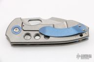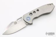 This Burch V4 folder features a stonewashed, CPM-154 blade. The handle is constructed of tumble finished titanium with anodized pivot collars . This knife features an anodized titanium tip up pocket clip. Blade is centered when closed, locks up with no play, rides on bearings. New from maker. Includes C.O.A. S/N #71.