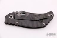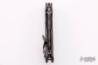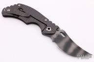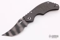 This KRT by Strider Knives features a tiger stripe upswept blade with thumbhole and notched thumbrest. The handle has a flame finished titanium frame with a matching titanium tip up clip. Nice detent, lockup and blade seating. New from Maker.