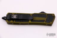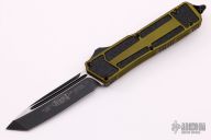 This QD Scarab by Microtech Knives features a black tanto blade. The handle is OD Green aluminum with non-slip inserts, tip down SS clip and glass breaker. Comes with original box and papers. S/N 14954 and dated 10/2015. Excellent condition.
