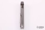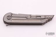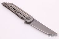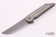 This Kwaiback by Jake Hoback features a stonewashed blade with notched thumbrest and flipper. The handle has a stonewashed titanium frame with matching tip up reversible clip. Excellent condition.