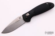 This Mini Griptilian by Benchmade features a stonewashed drop point blade with dual thumbstuds. The handle has black FRN scales, stainless steel liners, has right or left tip up carry clip. Includes the original box and papers. Excellent Condition.