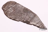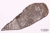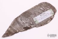 This Meteorite Slab my Miles Martin is 7.25" long, 2.75" wide at the widest point and .077" thick. Comes from the Muonionalusta Meteorite. Found in 1906 in Norrbotten, Sweden. Date of fall: 110,000 years ago? Classification: Octahedrite, fine.