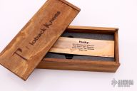 Husky What do you think about when you think "Husky...?" I guess it depends on whether you’re a dog person or you’re a “husky” person, lol. I have been asked many times over the years to make knives that have some substance to them, so when you put it in your pocket you know it's there. I have done knives this thick before, but in very limited quantities. At 3/4" thick, we're able to really help you make it known that you have a huge freaking knife in your pocket! Pushing almost a full pound of titanium and premium steel, you know that this beast is gonna do work. A 3-¾” long blade gets the job done! Diamond-like coatings or Stonewash, you choose (or don’t, and buy both)! Life is good when you're Husky! SPECIFICATIONS: Blade: Nitro-V Steel, 3.75" Length, .250 Thickness, Stonewash Finish Frame: Titanium, .250 Thickness, Stonewash Finish Closed Length: 5.5" Open Length: 9.25" Weight: 11.7 oz. Other Features: Pivot Thrust Bearings HRD (Hoback Roller Detent) Standard Sizes on all Screws for Ease of Replacement Hardened Steel Bearing Races Comes with original box and papers. Excellent condition.