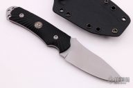 The C.U.B. fighter is a mid-size belt knife that is small enough for everyday tactical use but big enough for most larger field and tactical chores. The matte bead blasted 154-CM USA made stainless blade steel is an excellent choice for a knife to be carried close to the body as it is rust resistant yet holds a superb edge. 154-CM was originally designed as jet turbine blade material and it handles the rigors of everyday knife use extremely well.