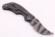 In 1988, he began making specialized knives for use by the military. This turned out to be fortunate turn of events, both for Mick and for the knife using world at large. Mick’s approach was to not get burdened by the weight of past designs. He started with a tabula rasa, a clean slate, informed only by his own experiences and knowledge of what a soldier needed in a knife. The knives he made didn’t look like the hunter-inspired knives seen in most PXs; instead they were almost brutish in their functionality: beefy, solid, and with unbreakable ¼” stock full tangs. These knives were the first indication of his innovative approach: in addition to their utilitarian design, the knives carried a subdued finish and subdued sheaths. No one carrying a Strider knife was going to be spotted because of sunlight glinting off of polished steel or a glossy leather sheath. Soldiers, policemen, and other men going into harm’s way couldn’t buy them fast enough. Mick sampled some good ideas, but made them great. For instance, he was not the first to wrap a knife handle with paracord, but he was the first to do it in a way that was tough enough for sustained infantry use. His knife line grew over the following years to include different varieties of fixed blades, all distinctive and many with specialized uses. But constant in all of them was a disregard for convention, and a desire to try new ideas. An example of this was the Ajax – it featured a very wide blade surface clearly designed to inflict damage. It drew on the weapons carried by Roman legionnaires, yet was modern and usable in the 21stCentury battlefield. Mick also worked on his technical skills, always striving to become better at the physical craft. At the 2002 Blade Show, a group of the best tactical knifemakers in the country decided to compete with each other to produce the most innovative and interesting fixed “battle blade” at the show. Mick’s entry, an incredible integral knife made out of ½” titanium stock with a zippered composite blade, gorgeous handles, and integral guard was the unanimous winner, and effectively retired the competition.