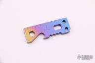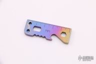 The Atwood R-Two Five is a compact mini wrench tool made of titanium. Features include 1/4" hex opening, oxygen bottle wrench, cap lifter. A Handy 2-inch ruler scale is engraved on the front side and 5cm metric scale graces the back. The R25 can be carried on a keychain or displayed on bead chain as a pendant. Comes with bag and card. Excellent condition.