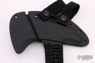 Developed for Medics that deploy with SOF Operators, the WK Medic Axe has features to meet their unique needs. While their main mission is to treat field casualties, it is not uncommon for Medics to perform combat applications. The WK Medic Axe is an effective weapon, as well as a breaching tool with a “can opener” on the end of the handle. A partial cord wrapped upper handle is standard on the WK Medic Axe. If the handle is damaged under the head, a new cord can readily be installed. The cord is also an excellent emergency resource. Axe Specifications Axe steel: 80CrV2 Black oxide no-glare finish Head length: 6" Overall length: 13 1/4" Blade thickness: 3/8" Skeletonized tapered full tang “Can Opener” end 1/3 paracord wrap handle Sheath Fast draw carrier Lined Kydex® HD shock cord quick-release retention system Nylon belt straps with Mil-Spec Pull-The-Dot™ snaps Designed for multiple carry options (See our Info page for carry options) New from maker with original packaging.