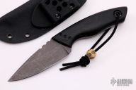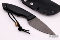 This Urge Mid by Bob Carter features an acid tumble finished blade with notched thumbrest, .157" blade stock and 1.404" blade depth, full tang construction. The handle has black G-10 scales with a lanyard hole at the butt. Comes with a kydex sheath and COA. New from maker.
