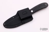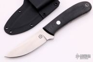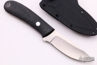 This K-16 Yukon Pro Skinner by Dozier Knives features a satin finished blade with .133" blade stock and 1.021" blade depth, full tang construction. The handle has black linen micarta scales with aluminum pins and lanyard hole. Comes with kydex sheath with belt clip. New from maker.