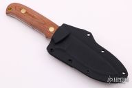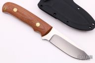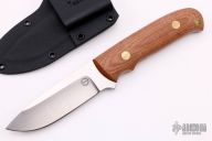 This Custom Knife by Dozier Knives features a satin finished blade with .135" blade stock and 1.103" blade depth, full tang construction. The handle has natural canvas micarta scales brass pins and lanyard hole. Comes with kydex sheath with belt clip. New from maker.