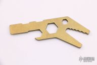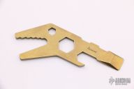 "If the Prybaby and the LockNut Monster had a lovechild it would be named Crypto! Made of anodized titanium. The features include open jaws with six offset SAE wrench sizes: 1/4", 5/16", 3/8", 7/16", 1/2", and 9/16". Also, a dedicated 1/4" hex bit opening, 1/2" wrench, prytool and cap lifter. Excellent Condition.