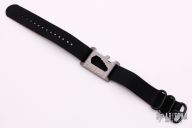Titanium Tool Bracelet by Peter Atwood. Has a 1" ruler, bottle opener, and various hex wrench openings. Comes with black nylon wrist band and makers card. Excellent condition.
