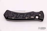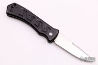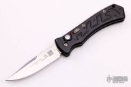 This Mini SERT side opening automatic by Al Mar Knives is from the first production run. Features a plain edge blade. Sliding safety. Aluminum frame. No clip. Has scuffs , scratches, has been used and resharpened, otherwise fair condition.