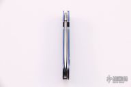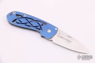 "Mind teasing innovation is put into motion in this cutting edge design. An ingenious mechanical LEVITATOR™ system in the Titanium handle scale leverages the spring/pin system to effectively lock the blade open and closed. The stylish blade shape makes the cut with its high-grade blade steel. A multitude of laser cut and precision machined components come together in a pocket friendly representation of modern engineering wizardry." Has some scratches, has been resharpened, otherwise good condition.