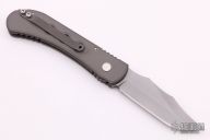 This Militia Recon side-opening automatic from Rob Dalton features a bead blast blade and an anodized aluminum frame. Bead blast titanium clip. Push button coil spring opening with strong action. Excellent condition.