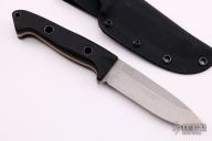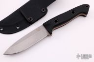 This Bushcrafter from Benchmade features a drop point tumble finished blade. The handle is comprised of black G10 scales over orange G-10 liners and full tang construction with hollow pins and a lanyard tube with lanyard. Includes a kydex sheath with a belt loop, original box and papers. Excellent Condition. Limited Edition #92 of 400
