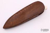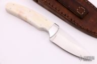 This custom fixed blade by Tinus Beukes features warthog ivory scales. Hand rubbed satin finish blade. .119" Blade Stock 1.166" Blade Depth, full tapered tang construction. Mirror polished stainless steel bolsters. Includes nicely tooled crocodile sheath. Excellent Condition.