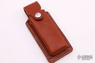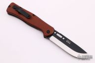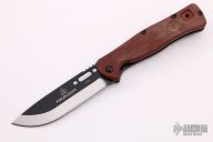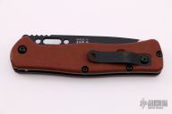 This Fieldcraft folder features two-tone finished drop point blade with black coated flats, satin bevels, deployment hole and notched thumbrest. The handle is comprised of brown canvas micarta scales, black stainless liners, matching hardware and reversible clip positioned for tip up carry. Comes with original papers and leather belt sheath. Excellent condition.