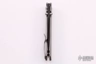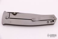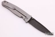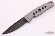 This Dr. Death by Tom Mayo features a Damascus spear point blade with false top edge and dual mosaic pin thumbstuds. The handle has bead blasted titanium frame with matching tip up clip and titanium standoffs. Nice detent, lockup and blade seating. Comes with a zippered case. Excellent condition.