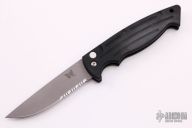 The Benchmade 2000S Reflex from Benchmade is a side opening button automatic with bead blasted, partially serrated blade and black fluted aluminum handle. Good strong opening action. Excellent  condition. Comes with Benchmade box. Discontinued.