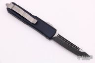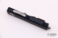 This UTX-85 by Microtech features a black tanto blade with fullers. The handle has a black aluminum frame with blasted hardware and tip down clip. S/N 49254 dated 12/2019. Comes with original box and papers. Excellent condition.