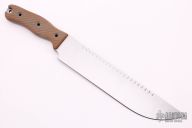 This SawMandu by Swamp Rat features a satin finished blade with sawteeth on the spine, .190" blade stock and 1.938" blade depth, full tang construction. The handle has natural canvas micarta scales. New from maker.
