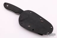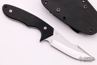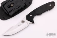This knife by Jeff Hall is a Joel Pirela Design, it features a satin finished blade with false top edge, .123" blade stock and 1.195" blade depth, full tang construction with black G-10 scales. Comes with kydex sheath with TekLok. #10 on blade. Excellent condition.