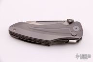 Our goal was to lighten this beast while keeping it amazingly strong, so we 3D-machined it inside and out. This is our first button lock flipper! (And what a challenge it was to pull off!) And finally, we added a little “bling” by anodizing the thumb studs, pocket clip, and backspacer either Bronze or Blue – very subtle and muted colors that set off the look of the knife in a way we haven’t tried before!