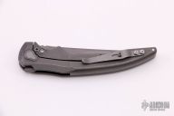 With a narrowing point in a traditional Japanese-style tanto, this blade is the epitome of stabby! With the widest point of the profile just shy of an inch, and narrowing down to an atom at the tip, this blade begs to poke things! Much more gentlemanly than our traditional fare, but still robust and rugged like you expect from Jake Hoback Knives. Caged bearings make this blade fly open with a crack and close with gentle smoothness.