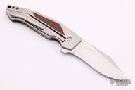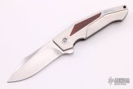 This Reduced Styx by GTC Knives features a hand rub satin finished blade with textured spine, tang and flipper. The handle has a satin finished titanium frame with a textured titanium tip up clip and milled relief, brown linen micarta inlays, textured mokuti backspacer. Comes with a leather zippered case and COA dated 2020. Nice detent, lockup and blade seating. New from maker.