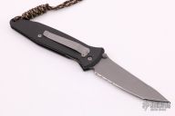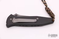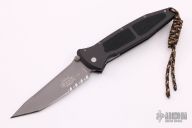 This manual Socom liner lock folder by Microtech features a fine bead blast partially serrated edged tanto blade, black anodized frame, and non-slip inlays. Dated 12/97. Original box and papers. Excellent condition.