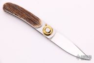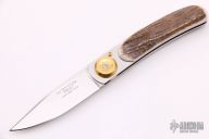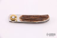 This Paul Slim Jim Knife from Lone Wolf Knives features a clip point polished blade. The Knife locks open with the patented "Paul Locking Mechanisim" The handle is comprised of sambar stag scales over steel frame and backspacer. Knife is in excellent condition.