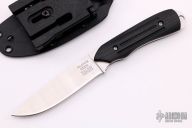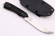 "The Talon, designed by custom knife maker and Talonite pioneer Robert Simonich of Clancy, Montana for CUDA/Camillus is the ultimate personal fixed blade knife. The Talon is crafted of Talonite: the finest knife blade material available. Talonite holds a razor edge and will never rust or corrode. It is a revolutionary blade material and a new first from CUDA. The classic drop point shape of the Talon is the perfect 'user' shape for such an advanced blade material. The ergonomic design and practical profile lend the Talon to a myriad of work-knife chores like skinning, boning, and light utility work." Milled black G10 handle. Full tang construction with blade thickness of .103" and depth of just under .915". Comes with a kydex sheath. Excellent condition. Very comfortable in the hand.