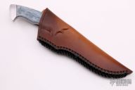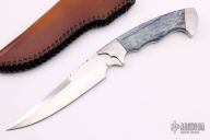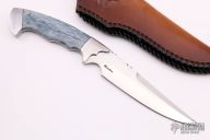 Visit this maker's website: Moulton Knives. "I started making Custom Knives as a Full-Time maker/designer in 1991. I currently use CPM-154CM, a VERY new Version of the standard 154CM steel. It is a very clean powdered version of the standard 154CM,still in its primary developmental stage. I am one of very few knifemakers that have access to this steel, until it is through the development & analysis process. I also occasionally use the standard ATS-34. I also use Damascus steel forged by some of my friends, in my creations.All of my knives are made freehand. That is, I do not incorporate the use of mills, lathes, surface grinders, etc....in my shop, there are just a couple of basic belt grinders, disc grinders, a drill press and a band saw. (I feel that as long as I can make a modest living building knives with a minimum of mechanical assistance, relying instead on my own hand craftsmanship then that is the way I prefer it). And I hope that this manner of making knives will in the long run give my knives a better value when I am long gone. I strive, above all, to build a high quality product that the discriminating buyer will be proud to own. All knives are created by stock removal and are hollow ground, most all of them having tapered tangs and dovetailed bolsters. Then, with each piece I create, I offer a personal satisfaction guarantee because I stand behind my work and it's underlying quality is paramount.I strive to create designs that are unique in the custom knife market. I want people to know when they see one of my knives in a collection, "that's a Moulton"! For me, this is the ultimate satisfaction I get from this work."