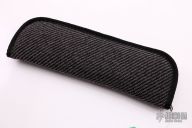 This knife by Dusty Moulton features a hand rub satin finished blade with false top edge and fileworked thumbrest on spine, .150" blade stock and 1.323" blade depth, full tang construction. The handle has dovetailed stainless steel bolsters front and rear, stabilized giraffe leg bone scales with black liners and mosaic pins. Comes with brown leather sheath, zippered case and COA dated November 2003. Has some minor staining on the b-side of the blade, otherwise excellent condition.