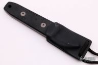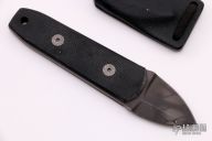 This custom dagger by Duane Dwyer features a chain link pattern double-edged blade with .355" blade stock and 1.214" blade depth, full tang construction with black G-10 scales. Has some light scuffs on the blade, otherwise excellent condition. Comes with a kydex sheath.