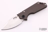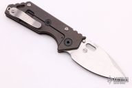 This 3/4 AR by Strider Knives features a stonewashed blade with notched thumbrest and thumbhole. The handle has a tumbled and anodized titanium frame with a stonewashed titanium tip up clip. Nice detent, lockup and blade seating. New from Maker.