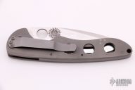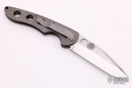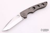 This Defender by Crawford Knives is a Joel Pirela Design, it features a satin finished blade with thumbhole. The handle has a bead blasted titanium frame and liner with stainless steel backspacer and tip down clip. Has a couple light scuffs, otherwise excellent condition.