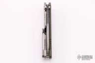 This 187 DPT Drop Point by Medford Knife and Tool, features a Vulcan drop point blade with notched thumbrest and thumbhole. The handle has a green G-10 front scale and a stonewashed titanium lockside and tip up titanium clip. Nice blade seating, detent and lockup. Includes the original papers. Has a few light scuffs, otherwise excellent condition.