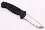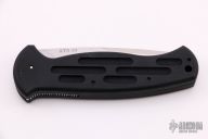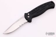 This AFO auto by Al Mar and Benchmade has a bead blast finished blade with partially serrated edge. Black aluminum handle with a lanyard hole. Hard to find. Excellent condition. Comes with nylon sheath. This one is sterile with no logos.