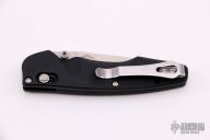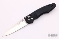 This assisted opening 470 Emissary by Benchmade features a drop point blade with swedge and dual thumb studs. The handle consists of a black anodized aluminum frame with a deep carry steel tip up clip that is reversible for right or left hand carry. Some handling marks on frame but otherwise great condition.