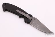 This Kasper by Crawford Knives features a bead blast finished blade with swedge and dual thumbstuds. The handle has black linen micarta scales, bead blasted titanium liners, tip down bead blasted stainless steel clip and backspacer. Nice detent, blade seating and lockup. Excellent condition. Comes with hard case. Limited Edition #24. Blade reads "Bob Kasper 1950-2006 No. 24"