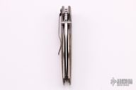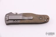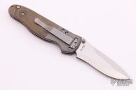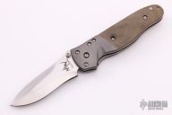 "Named after the Fate that began the thread of life, The Clotho is a 3 1/8" BG-42 bladed locking folder. Refined enough for the most discerning tastes, it is still first and foremost a tactical folder. " Hand rub satin finished blade with dual thumbstuds and notched thumbrest. Dovetailed and bead blasted titanium bolsters, green canvas micarta scales, satin finished titanium liners, tip down stainless steel clip. Excellent condition. Comes with nylon belt sheath.