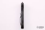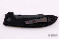 This CQC-8 by Emerson has a black blade with thumbdisc and notched thumbrest. The handle has black G-10 scales, titanium liners, black G-10 backspacer and a tip up black stainless clip. Comes with original box and papers. Excellent condition. #476 dated 2003