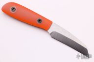 This peeler by Ben Tendick features a satin finished blade with a full tang construction.  .106" Blade Stock.  1.183" Blade Depth.  The handle features orange ghost G10 scales and steel tubes.  Includes a padded zippered case and makers card.  New from maker.
