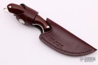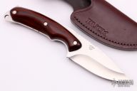 This Buck features a satin finished blade with notched thumbrest, .137" blade stock and 1.533" blade depth, full tang construction. The handle has wood scales. Comes with brown leather sheath and original box. Excellent condition.